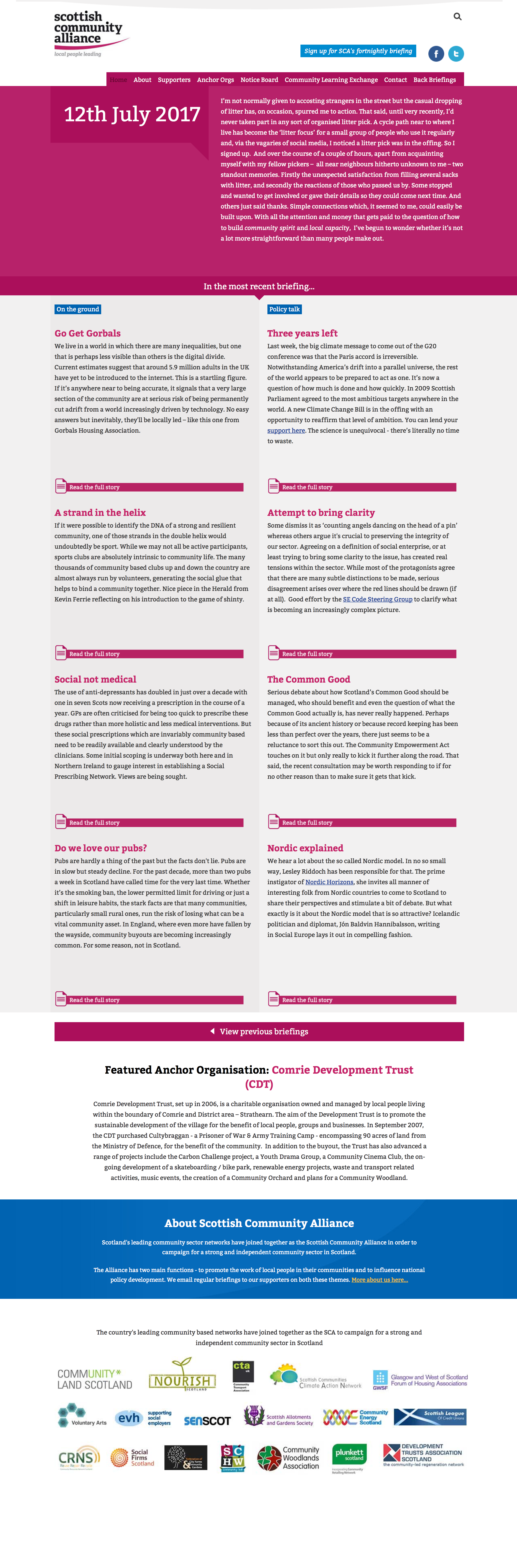 Scottish Community Alliance works to help the community sector in Scotland to campaign more effectively on a wide variety of issues.